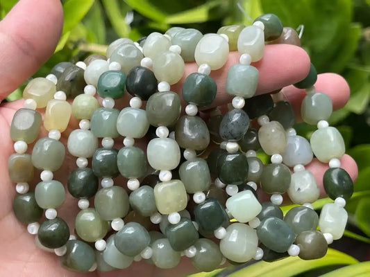 Burma Green Jade 8-10mm Irregular with Shell A Grade 100% Natural Crystal Gemstone